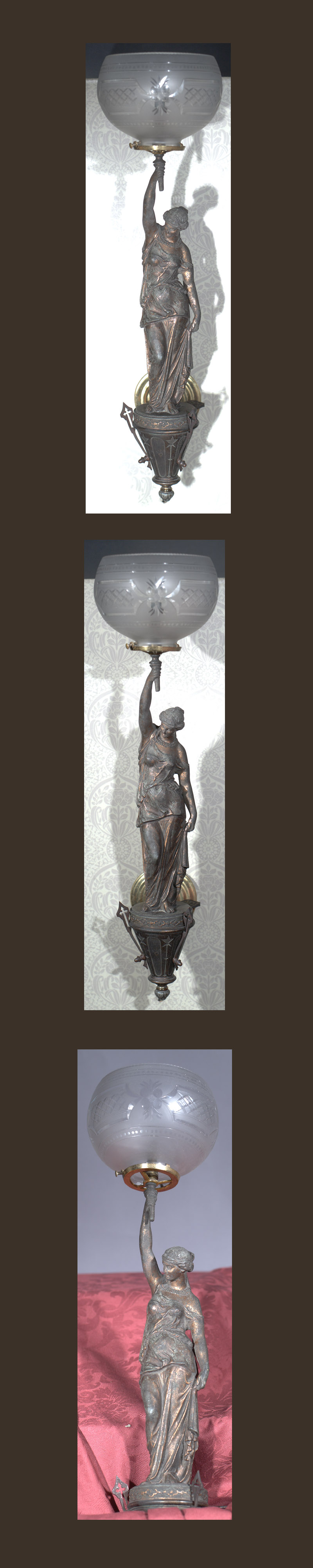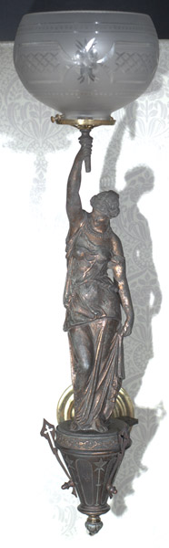 Here is the finest examples of a Circa 1870 figural gas wall sconce we have ever seen or documented. This was made by Mitchell Vance and Company and is a very rare configuration.