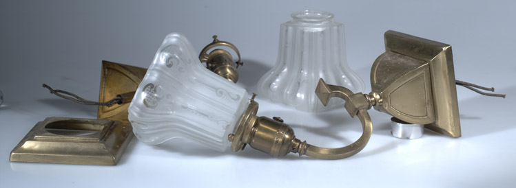 Great pair Art and Crafts wall sconces in mint original condition with original shades, Paiste sockets, and acorn pulls.